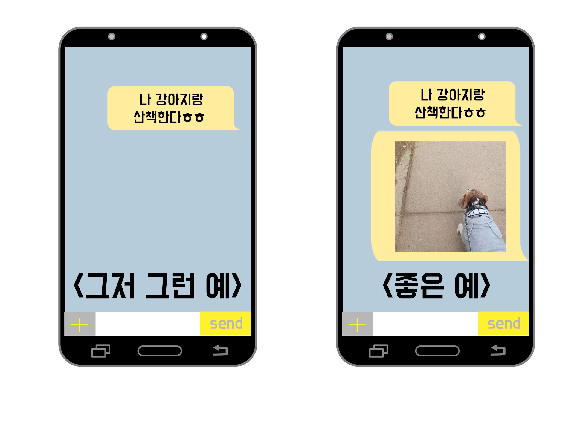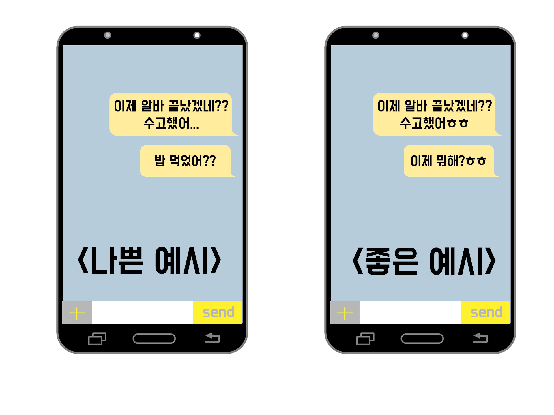 여기 나쁜 예사와 좋은 예시가 있어요.